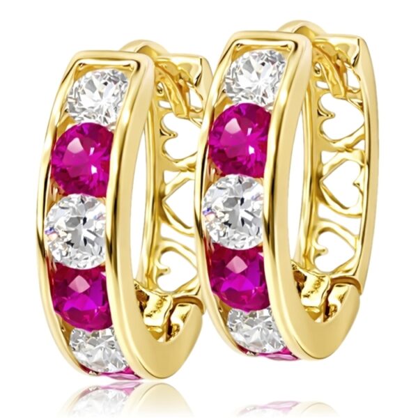 Ez az arany baba fülbevaló élénk piros és fehér kövekkel díszített, vidám, mégis elegáns darab. A finoman ívelt forma és az áttört, szívecskés belső rész igazán kedves megjelenést ad. Bepattintós kialakítása biztonságos záródást biztosít, így stabilan és kényelmesen viselhető a mindennapokban is. Tökéletes választás arany kislány fülbevalóként vagy különleges ajándékként.