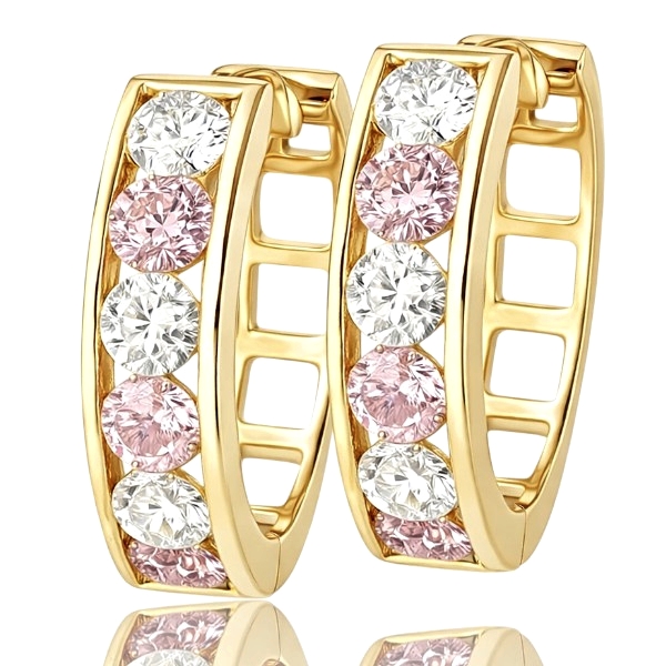 Ez az arany gyerek karika fülbevaló fehér és rózsaszín kövekkel készült, letisztult, zárt kialakítással. A bepattintós zár biztonságosan rögzít, így stabil és kényelmes viselet a mindennapokra. A kövek rendezett elhelyezése finoman díszít, az összhatás harmonikus.