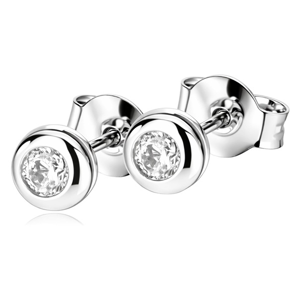 Letisztult fehér arany bedugós fülbevaló kerek, button kialakítással és középen elhelyezett kővel. A sima, polírozott perem egységes keretet ad a kőnek, így a fülbevaló rendezett, visszafogott hatású. Kényelmes viselet, amely diszkréten illeszkedik a mindennapi megjelenéshez.