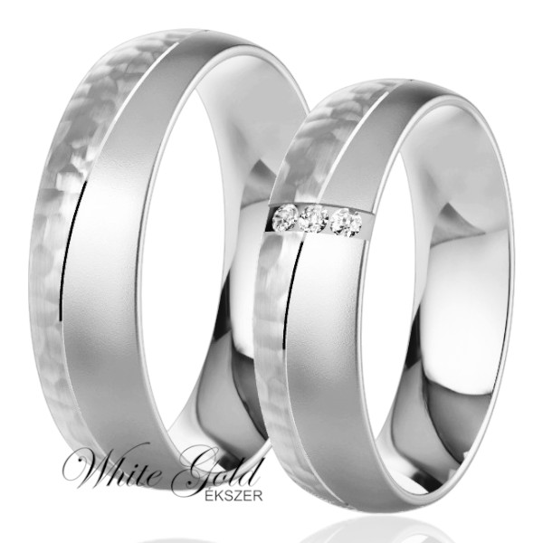 Fehér arany karikagyűrű pár kalapált mintával