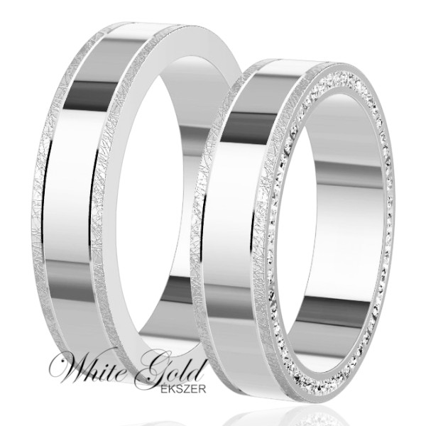 Fehér arany karikagyűrű pár jégkarc szegéllyel