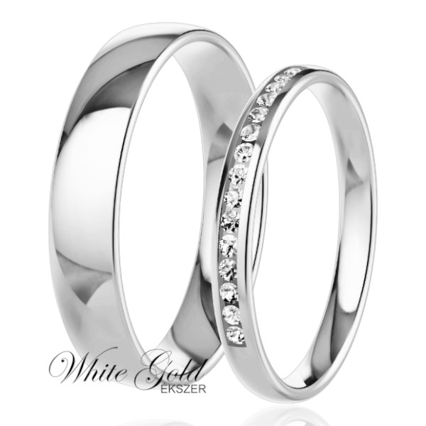 Fehér arany karikagyűrű pár sorköves női gyűrűvel