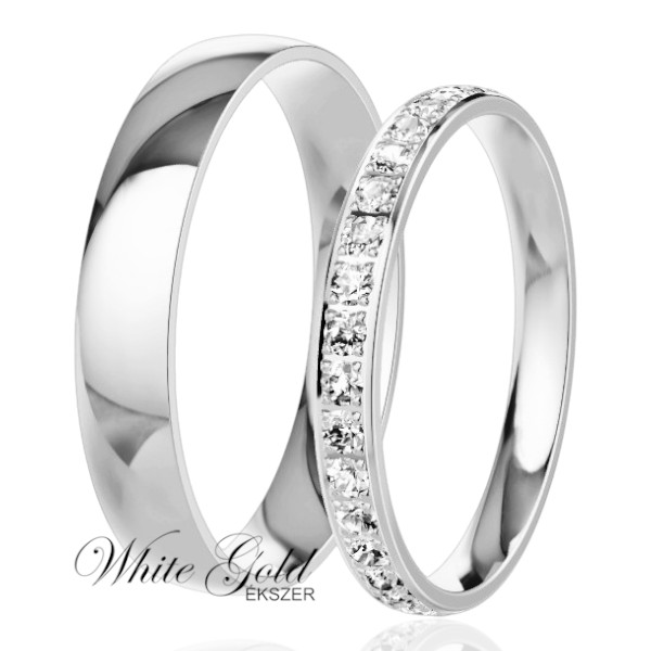 Fehér arany karikagyűrű pár keskeny női sorköves kivitelben