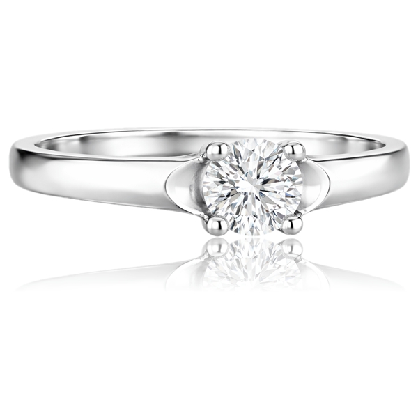Fehér arany eljegyzési gyűrű brill csiszolású cirkónia kővel. A kő egyedi, finoman formált foglalatban kap helyet, amely hangsúlyozza a központi követ, miközben a sima sín letisztult összhatást ad. Elegáns, karakteres darab a klasszikus formák kedvelőinek.
