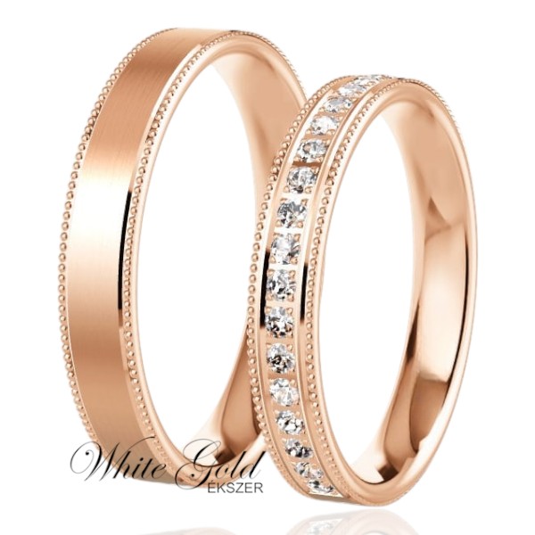 Rozé arany karikagyűrű pár gyöngyözött peremmel