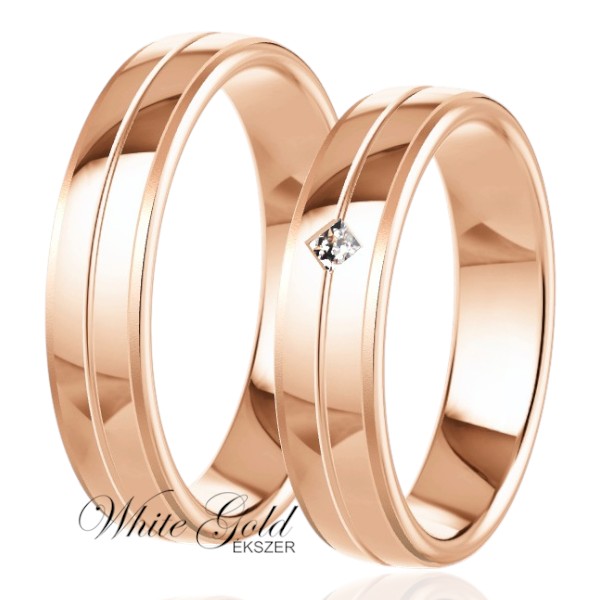 Rozé arany karikagyűrű pár gyémántvéséses vonallal