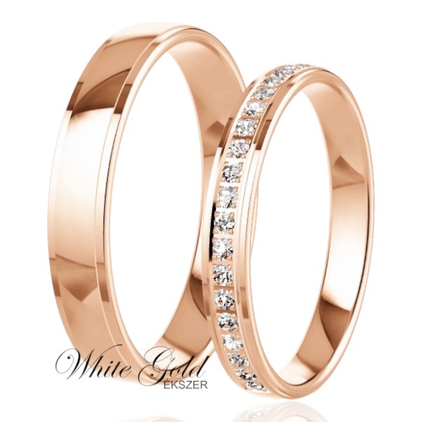 Rozé arany karikagyűrű pár sorköves női gyűrűvel