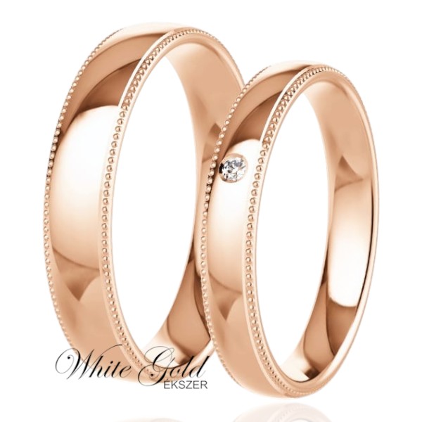 Rozé arany karikagyűrű pár gyöngyözött széllel