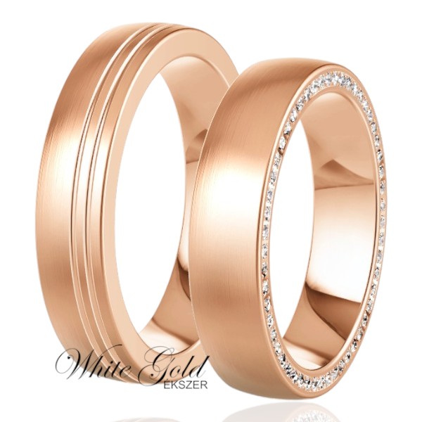 Rozé arany karikagyűrű pár gyémántvéséssel