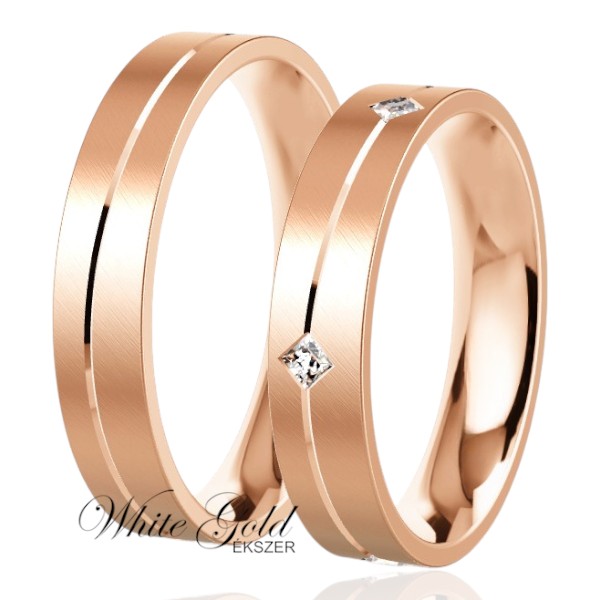 Rozé arany karikagyűrű pár finom gyémántvéséssel