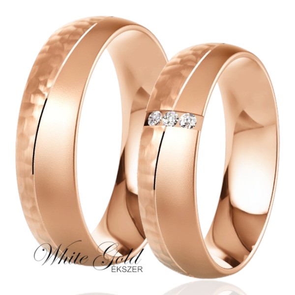 Rozé arany karikagyűrű pár kalapált felülettel