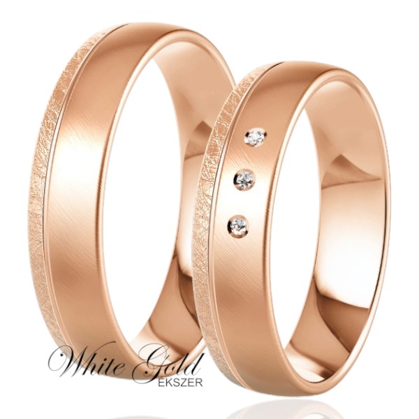 Rozé arany karikagyűrű pár jégkarc vésésű szegéllyel