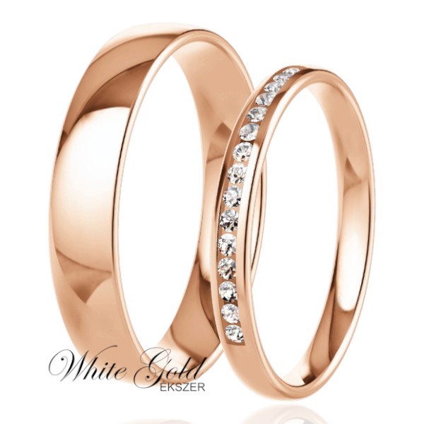 Rozé arany karikagyűrű pár sorköves női gyűrűvel
