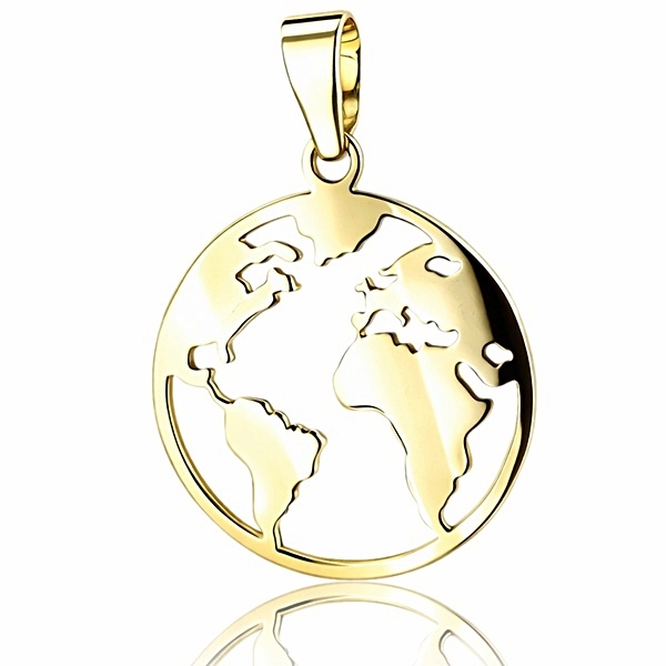 Ez a sárga arany medál áttört földgömb formában készült, finoman megjelenített kontinensekkel. A letisztult, modern kialakítás és a fényes felület könnyed, mégis karakteres megjelenést ad az ékszernek. Nyakláncon viselve különleges szimbolikát hordoz, utazáskedvelőknek és világjáróknak is stílusos választás.