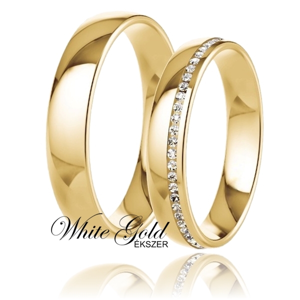 Klasszikus sárga arany karikagyűrű pár sorköves női gyűrűvel