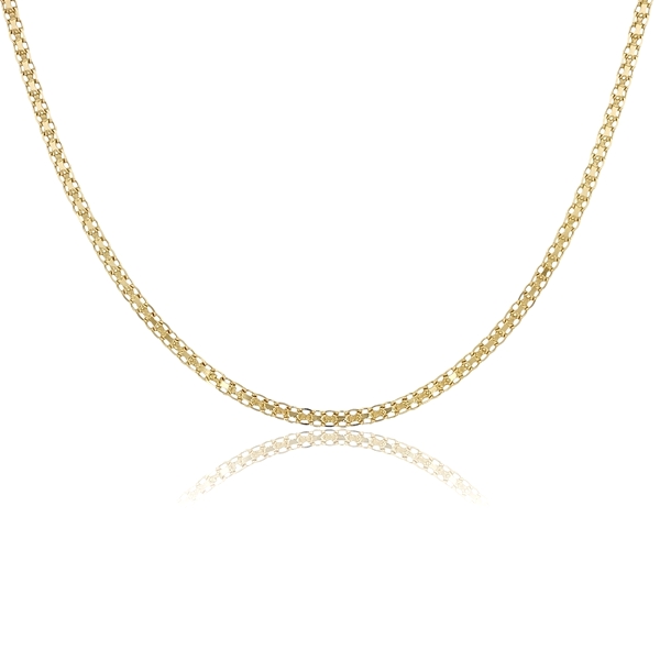Ez a 14 karátos sárga arany lapos női nyaklánc finoman megmunkált, sűrű láncszemekkel készült, amelyek egységes, letisztult felületet adnak. A lapos kialakítás miatt a lánc szépen fekszik fel a nyakra, a fényes részek visszafogottan érvényesülnek. Önállóan viselve mutatja meg igazán a karakterét, a forma és a felület együtt adja a megjelenését. Elegáns, nőies darab, amely a klasszikus láncoktól eltérő összhatást nyújt.