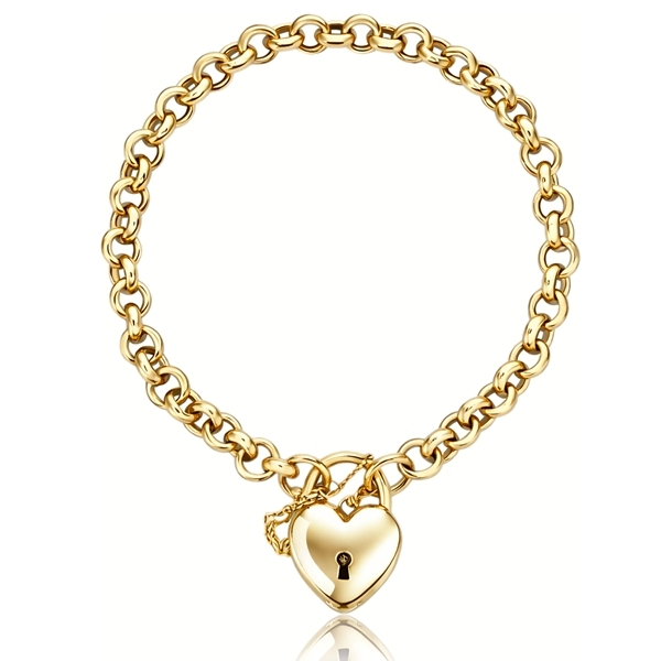 Ez a sárga arany karkötő klasszikus láncszemekkel és finoman kidolgozott szív alakú lakattal készült, amely romantikus hangsúlyt ad az ékszernek. A fényes felület és az időtálló forma elegáns, mégis érzelmekkel teli megjelenést teremt. Különleges darab, amely önállóan viselve is kifejező és nőies.