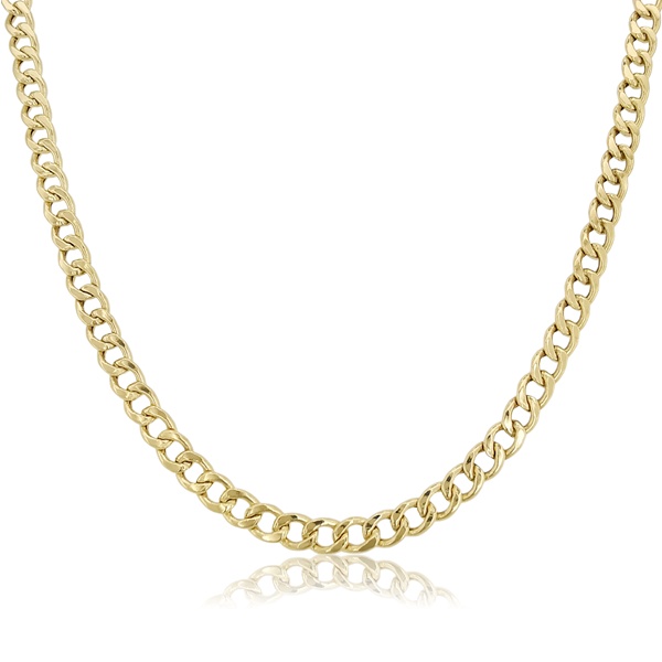 Ez a 14 karátos sárga arany pancer nyaklánc lapított, sűrűn kapcsolódó láncszemeivel egységes, nyugodt összhatást ad. A pancer szemek sík felülete egyenletes fényt ad a láncnak, amely önállóan is jól érvényesül. Klasszikus kialakítása miatt időtálló darab.