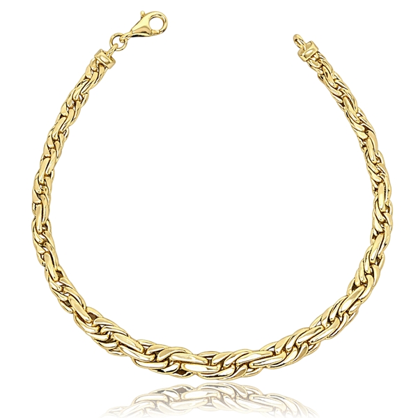 A lapos kialakítású, széles arany láncszemek egységes, határozott vonalvezetést adnak ennek a női karkötőnek. Megjelenése rendezett és karakteres, mégis jól illeszkedik nőies stílushoz is. Önálló darabként is hangsúlyos, időtálló választás.